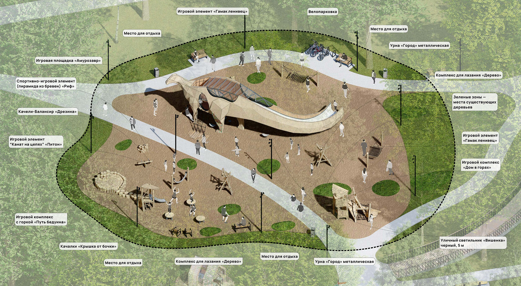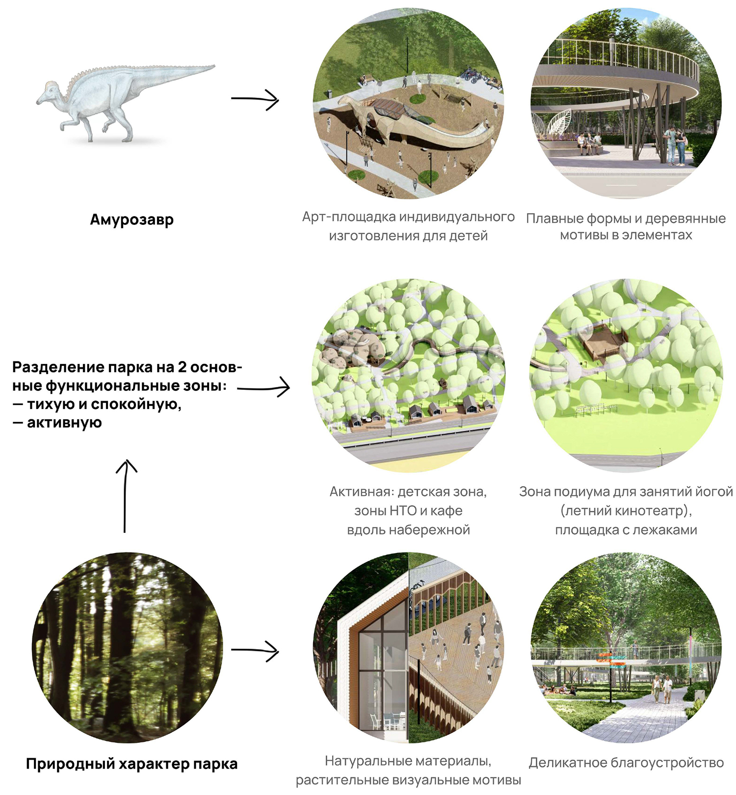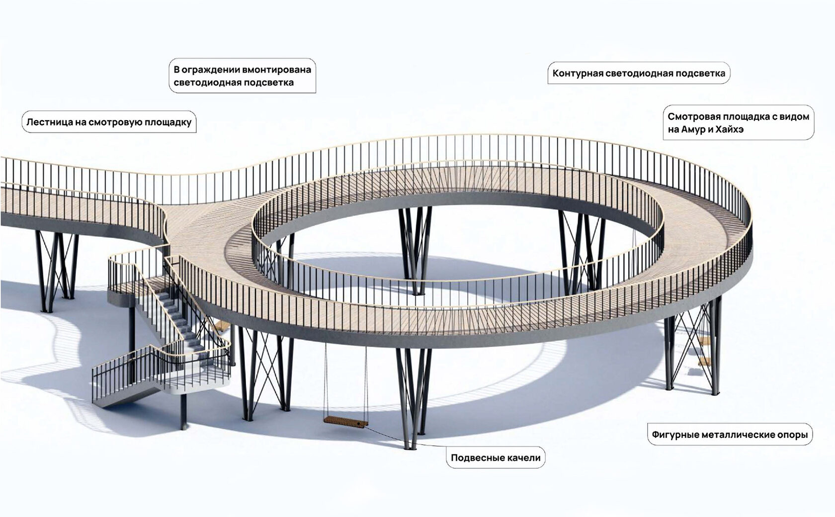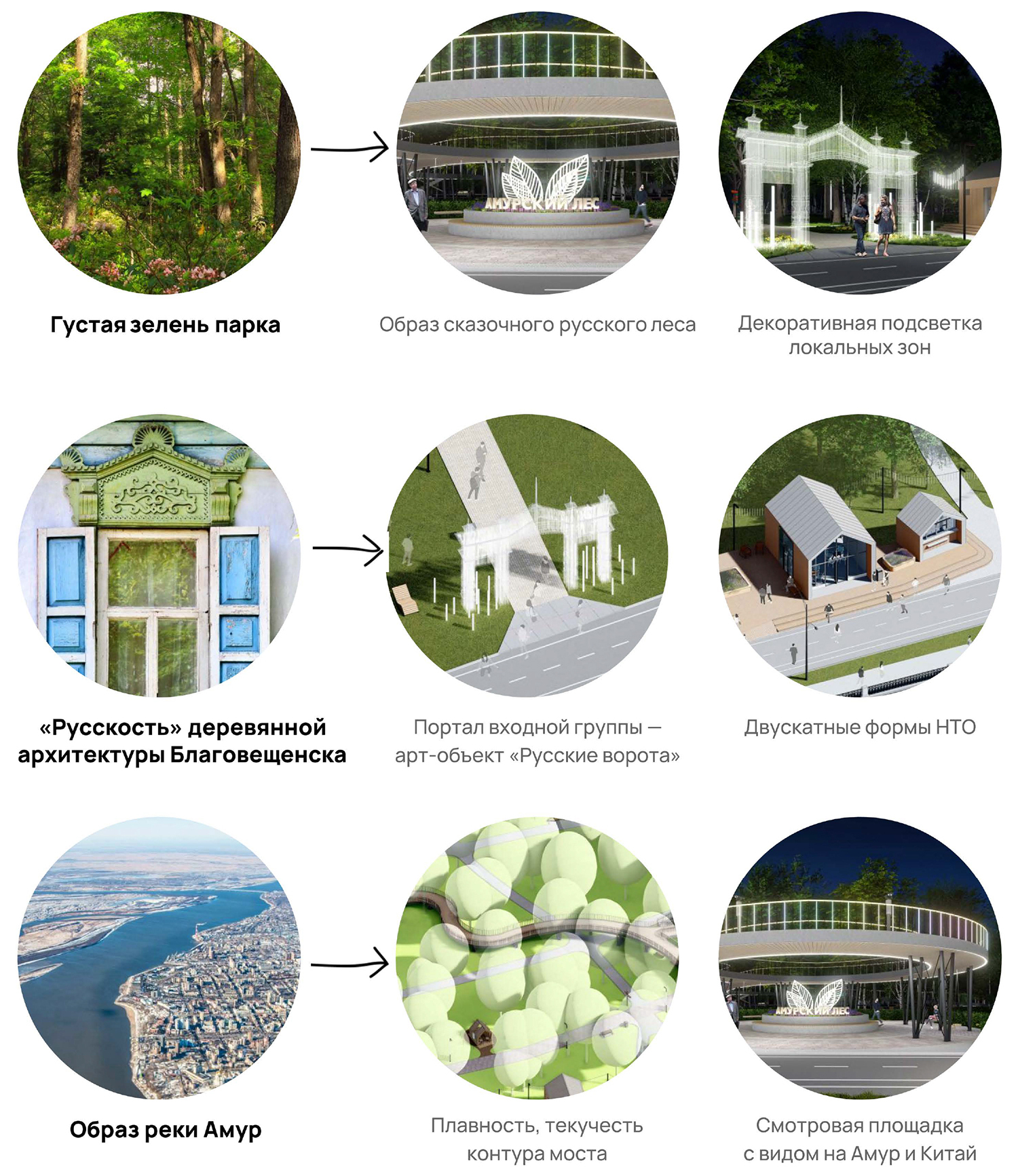 Расположение парка на берегу р. Амур, напротив Китая, накладывает на эту территорию условие ее просматриваемости и «витринности». Важно, что парк формирует туристический фасад Благовещенска.