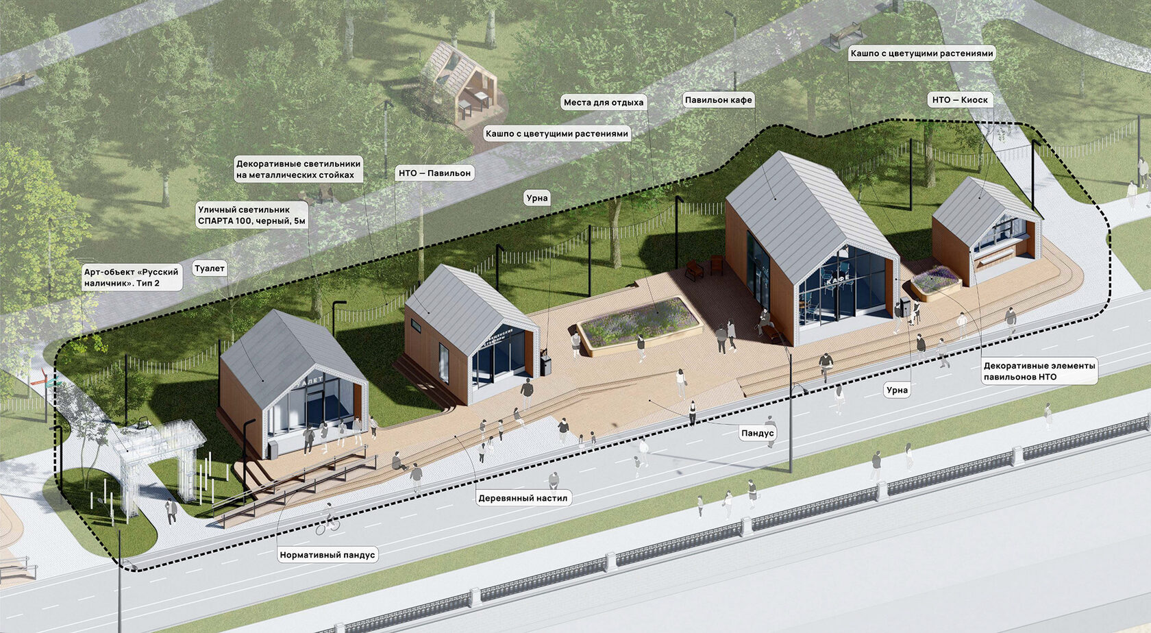 Парк станет частью новой общественно-деловой линии «Золотая миля». Она включит деловые, торговые, выставочные площадки, объекты сервиса и места притяжения туристов, зоны отдыха и рекреации.